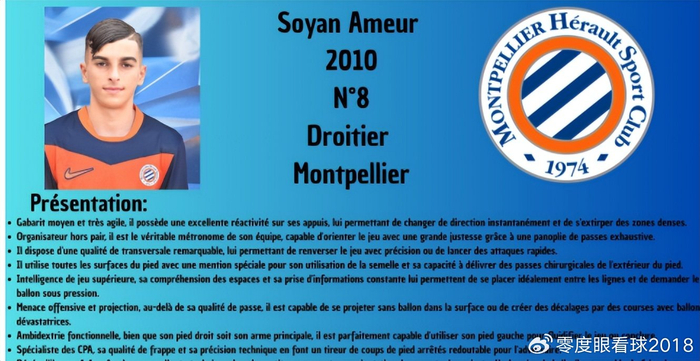 据悉,阿莫尔已签约瓦瑟曼经纪公司,他的东家蒙彼利埃非常希望留住这位中场天才小将,但以上4大欧洲豪强却对他展开了猛烈的追逐。最终,这位年仅15岁法国的中场小将会花落谁家呢?我们且拭目以待。