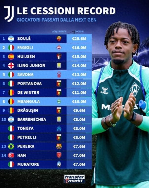 星空体育官网-尤文青训卖人榜:苏莱2560万欧去罗马居首,法乔利第二赫伊森第三