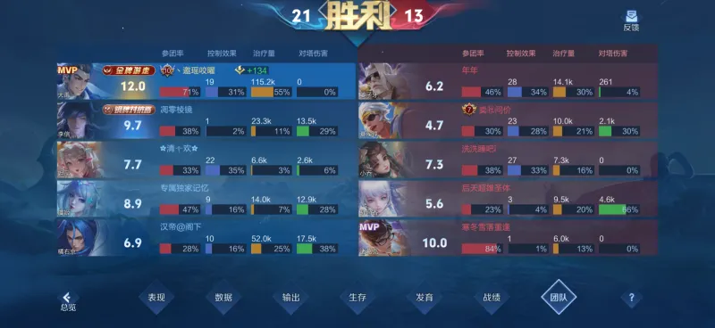 单排10多星的局就打了两把,都是承伤控制治疗拉满,视野更不必说了,全图的鼎…